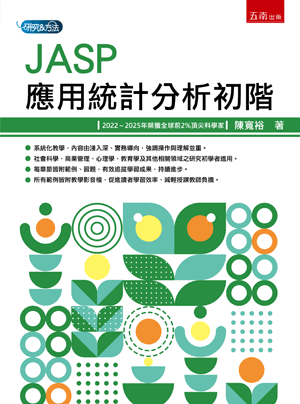 Chapter 01 JASP簡介 1. JASP簡介 2. JASP 3. JASP介面簡介 4. JASP「功能選單」簡介:開啟內建資料檔與分析檔 5. JASP「功能選單」簡介:各類功能設定 6. JASP「資料視窗」簡介 7. JASP「分析視窗」簡介 8. JASP「報表視窗」簡介 9. 參考文獻 10. 本書資料檔